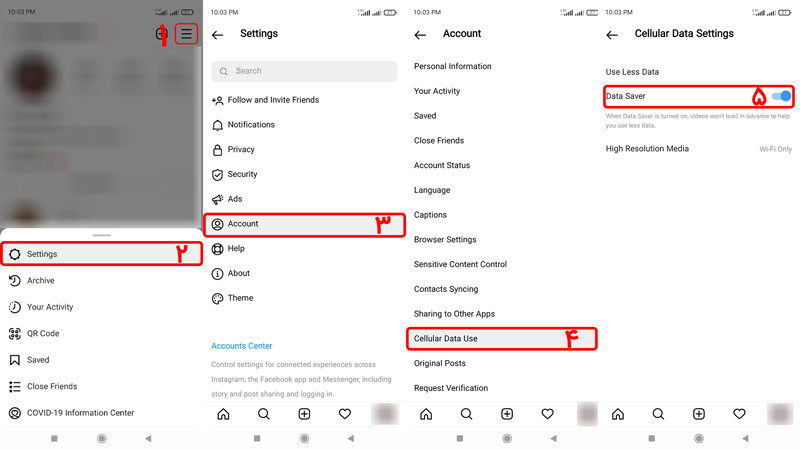 برای فعال کردن Data Saver مراحل زیر را به ترتیب انجام دهید: